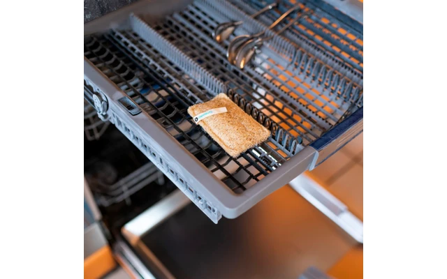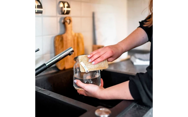 Humedezca con agua antes de enjuagar, esto hará que la esponja vegetal seca sea completamente suave y alcance su tamaño óptimo para su uso. Aclara tu esponja de cocina con agua limpia después de usarla y cuélgala para que se seque en el lazo. Si la esponja no se utiliza, guárdela en un lugar seco. Después de un uso repetido, lave las esponjas en la lavadora o el lavavajillas: así se mantendrán limpias y utilizables durante mucho más tiempo que las tradicionales y malolientes esponjas de plástico. Si utiliza las esponjas de limpieza a diario, deberá sustituirlas al cabo de 4-6 semanas para obtener los mejores resultados, a pesar de los cuidados y lavados regulares.