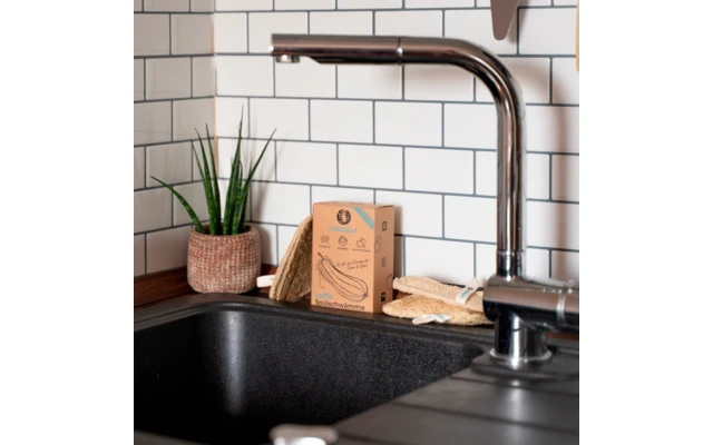 - Duraderas y prácticas: el útil lazo para colgarlas facilita su secado. Lavar las esponjas de enjuague después de un uso repetido: esto las mantiene limpias de nuevo y permite utilizarlas mucho más tiempo que las esponjas de plástico convencionales, que huelen mal.