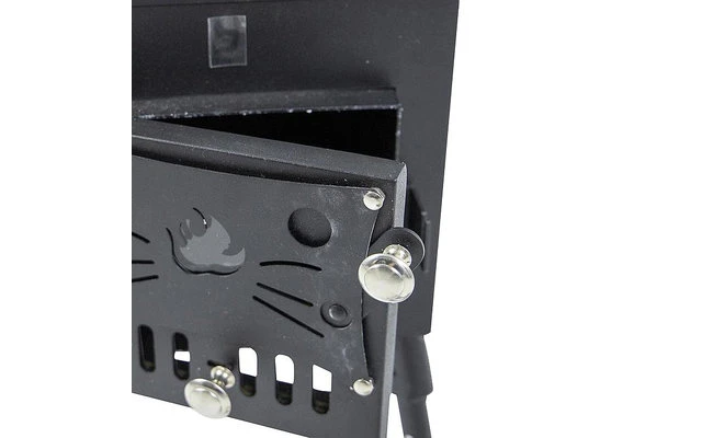 La estufa puede utilizarse bajo un toldo con la chimenea en el exterior. Esto proporciona un buen calor bajo un toldo. La cocina también está equipada con una placa de cocción. Esto significa que el agua o los alimentos también pueden hervirse en la estufa. El material de la estufa es el acero.