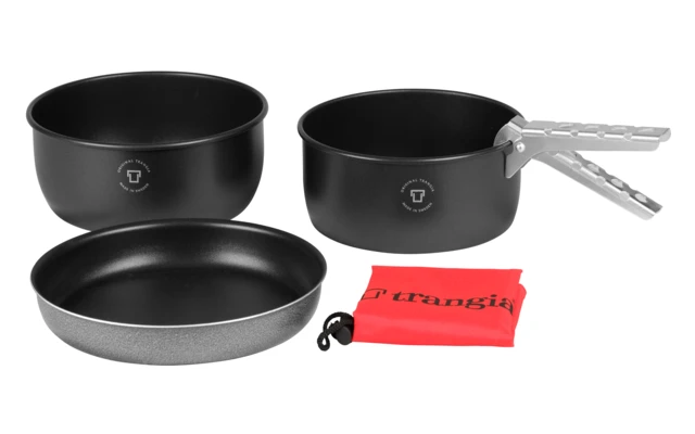 Se utiliza principalmente en nuestra sartén, pero también lo encontrará en nuestras ollas. Las sartenes antiadherentes están hechas de Ultralight con un revestimiento que evita que los alimentos se peguen, a pesar de que la grasa para freír es escasa o nula. Esto también hace que sean fáciles de lavar. Al mismo tiempo, el antiadherente es más delicado y se recomienda utilizar sólo utensilios de madera o plástico en estos recipientes. El revestimiento antiadherente de Trangia es del tipo PTFE, libre de PFOA.