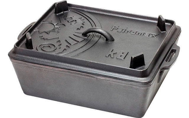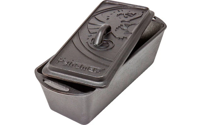 El efecto antiadherente natural del hierro fundido, que mejora con cada uso, hace que hornear en el molde para pan sea especialmente agradable. Las dos asas garantizan un manejo práctico, para que pueda sacarlo fácilmente del horno. Por cierto, al tener un fondo plano, la forma angular funciona en todo tipo de cocinas, incluida la de inducción. El plato de caja es el complemento ideal para sus productos de hierro fundido Petromax, ya que la tapa se puede retirar con el levantador de tapas Petromax.