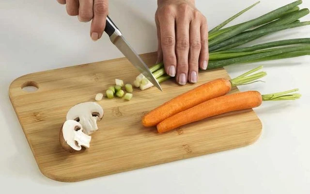 El práctico orificio de agarre hace que el manejo sea un juego de niños. Cuando no se utiliza, la tabla de cocina puede tenerse siempre a mano y colgarse en la pared para ahorrar espacio.